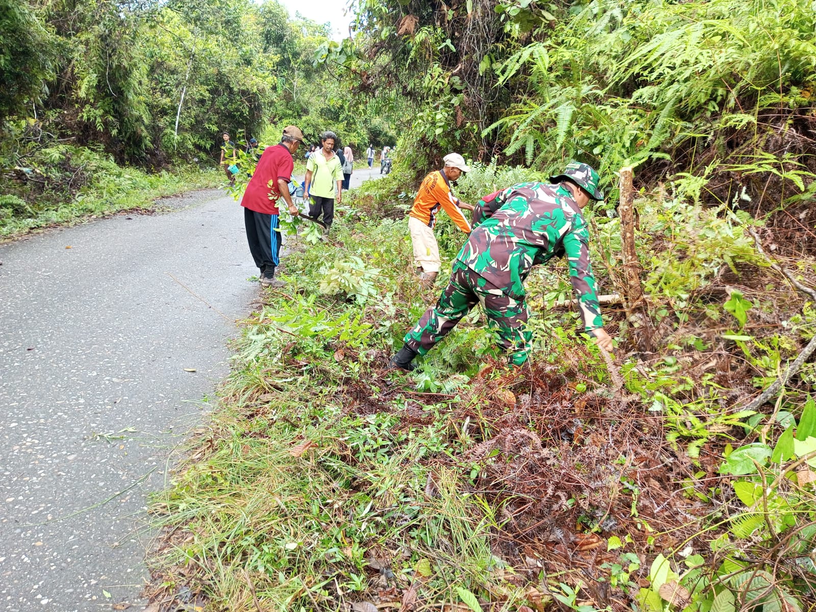 Kegiatan kerja bakti ini dilakukan karena kondisi parit dan bahu jalan semakin menyempit karena ditumbuhi rumput dan semak yang menjalar ke bahu jalan sehingga sangat kotor,jelasnya.