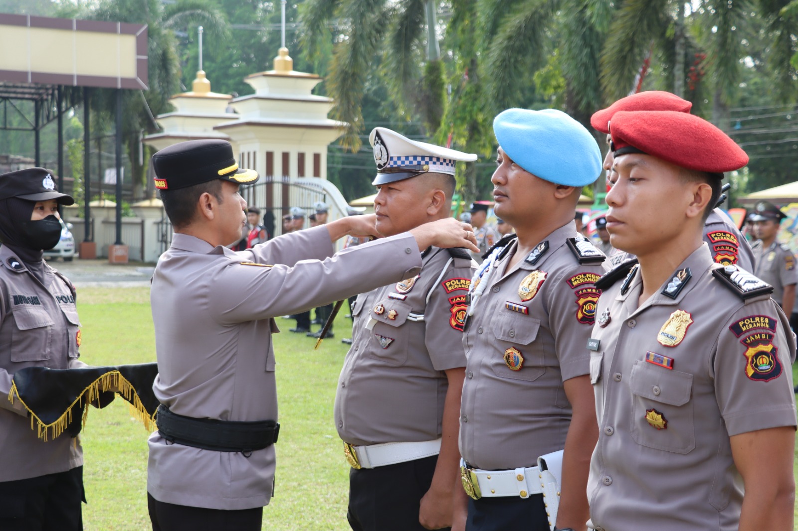 Sebanyak 61 personel, yang terdiri dari 33 perosnil Polres Merangin dan 28 personil Bataliyon B Pelopor Sat Brimobda Polda Jambi, menerima kenaikan pangkat sebagai bentuk apresiasi atas dedikasi dan kinerja mereka.