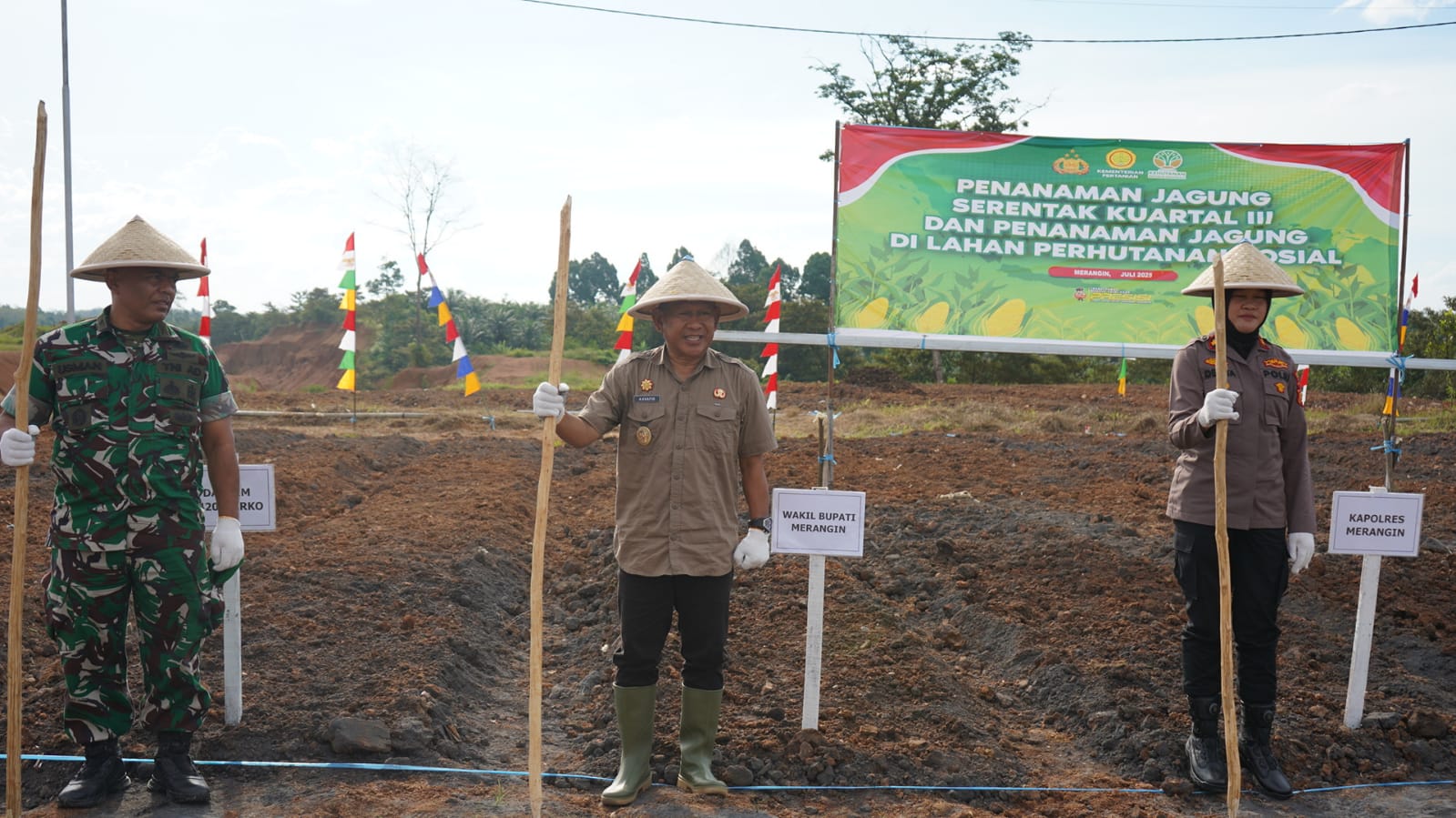 Bangko-Wabup Merangin H A Khafidh bersama Wakapolres Merangin Kompol Devita Efrina, Kasdim 0420/Sarko Mayor Inf Usman, Kajari Bintang SH diwakili Kasi Intel Ari Pratama, menaman jagung di lahan PT Kurnia Merangin Berjaya, Rabu (09/7).