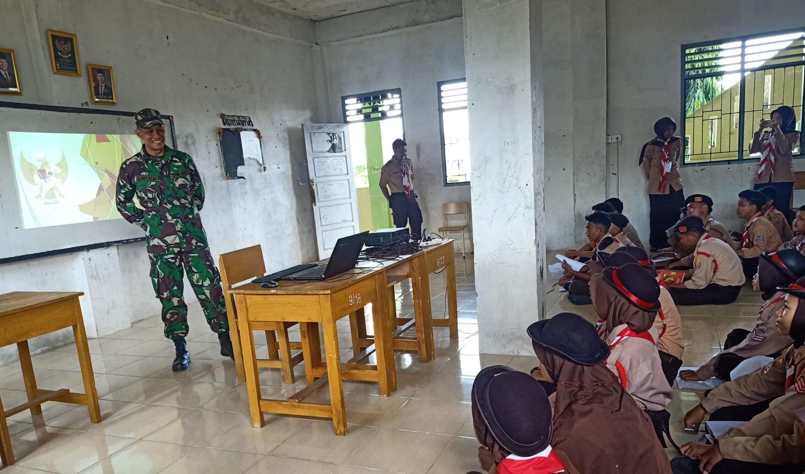 Dalam penyampaiannya, Sertu Slamet Riyadi menekankan pentingnya menanamkan semangat Bela Negara sejak usia dini. “Anak-anak inilah masa depan bangsa. Kesalahan sekecil apa pun dalam membentuk karakter mereka bisa berdampak besar terhadap kehidupan berbangsa dan bernegara di masa depan,” ujar Sertu Slamet dengan penuh semangat.