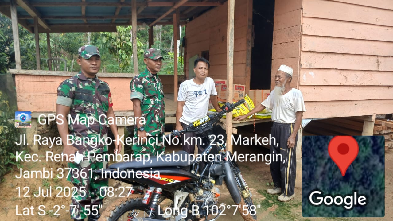 Merangin, 12 Juli 2025 – Dalam rangka mempererat hubungan antara TNI dan masyarakat, Babinsa Koramil 420-07/Sei Manau, Peltu Febriyadi bersama Serda Eko, melaksanakan kegiatan Komunikasi Sosial (Komsos) di Desa Markeh, Kecamatan Renah Pembarap, Kabupaten Merangin.