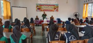 Kepala SMKN 9 Sarolangun, Deri Emilia, S.Pd., M.M., menyampaikan apresiasi dan rasa terima kasihnya atas kehadiran Babinsa dan jajarannya.