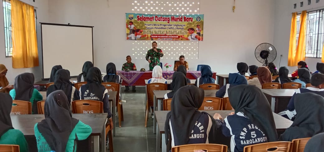 Sarolangun, 16 Juli 2025 – Dalam rangka Masa Pengenalan Lingkungan Sekolah (MPLS) tahun ajaran baru, SMKN 9 Sarolangun menghadirkan materi istimewa dalam menyambut murid baru yaitu nilai-nilai kebangsaan. Bertempat di Gedung Industri 4.0 yang berlokasi di Desa Bukit Murau, Kecamatan Singkut, para siswa-siswi baru mendapatkan pembekalan wawasan kebangsaan langsung dari jajaran TNI.