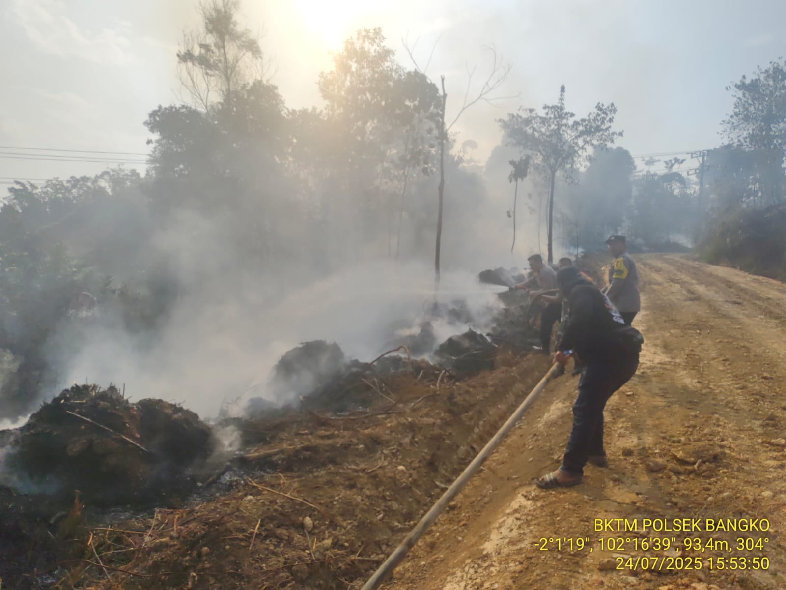 ”Pada saat itu anggota Polres dan Polsek Bangko langsung turun kelapangan, bersama-sama dengan personil TNI, personil BNPB. Dengan hanya menggunakan mesin pompa air dan alat seadanya api dapat dipadamkan sehingga tidak melebar kearah pemukiman warga”, jelas Kapolres.