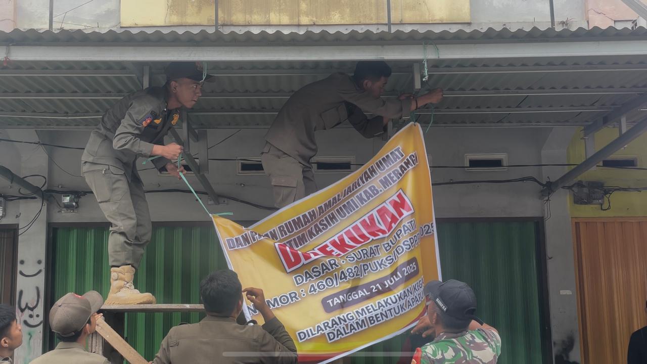 Sekira pukul 09.00 WIB, aparat berpakaian dinas dan sipil tampak memasuki kawasan yayasan diiringi personel gabungan lainnya. Tak ada keributan, setelah menemui pihak yayasan, petugas kemudian memasang spanduk bertuliskan “PEMBEKUAN AKTIVITAS” di depan bangunan. Spanduk itu merujuk pada surat resmi Bupati Merangin Nomor 460/482/PUKS/DSPPPA/2025.