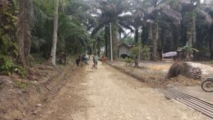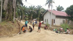 Puluhan warga tampak semangat membersihkan parit, Dan juga merapikan jalan jalan lingkungan sehingga jalan lingkungan menjadi bersih.