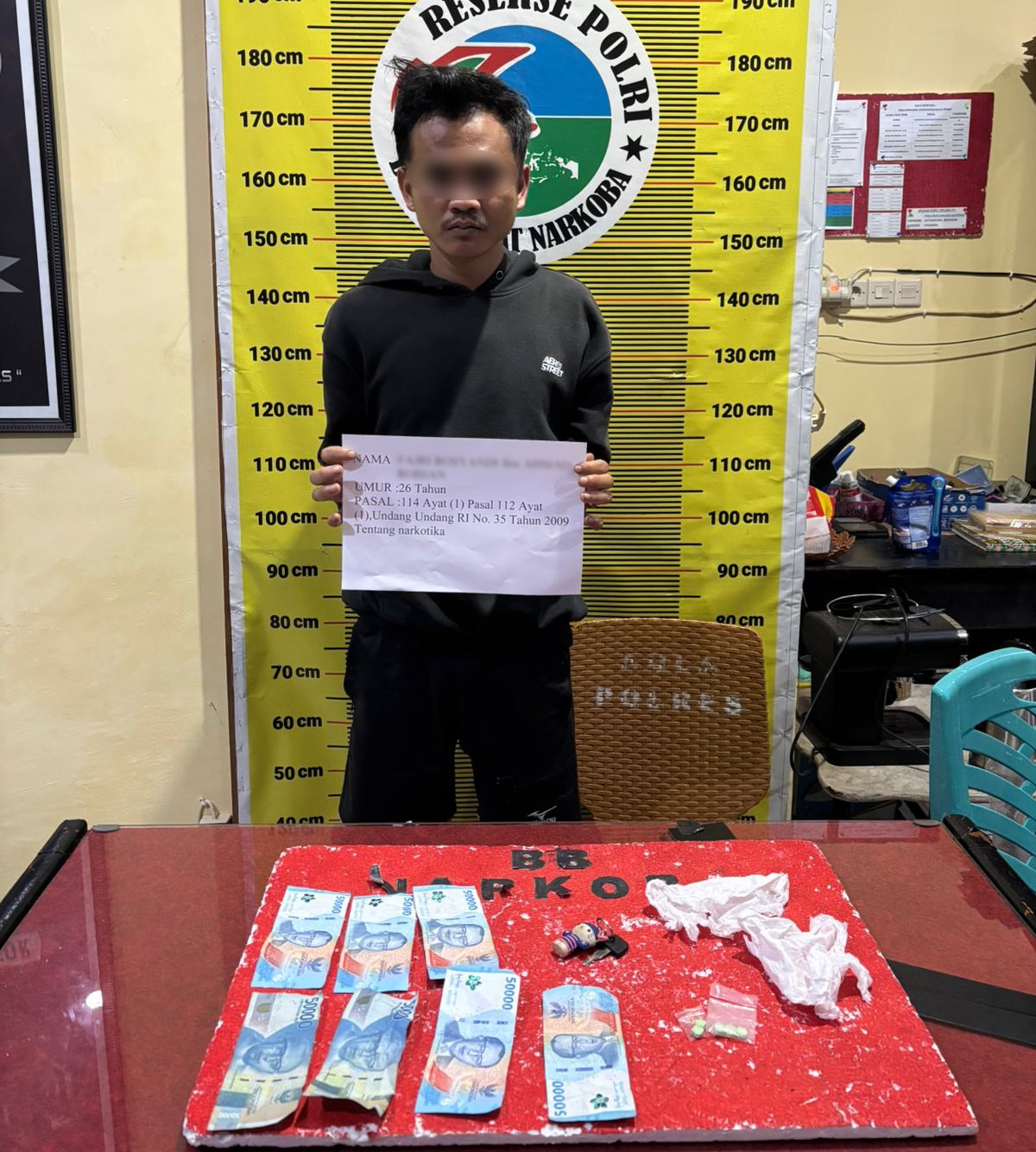 Tersangka berinisial PR (26) yang merupakan warga Jl.Kenanga 1 Kel.Ratu Samban Prov. Bengkulu, berhasil diamankan oleh Tim Opsnal Sat Resnarkoba Polres Merangin pada Jumat (01/08/2025) sekira pukul 20.00 Wib, di Bangko Tinggi Kel.Dusun Bangko Kec.Bangko Kab. Merangin pada saat hendak melakukan transaksi.