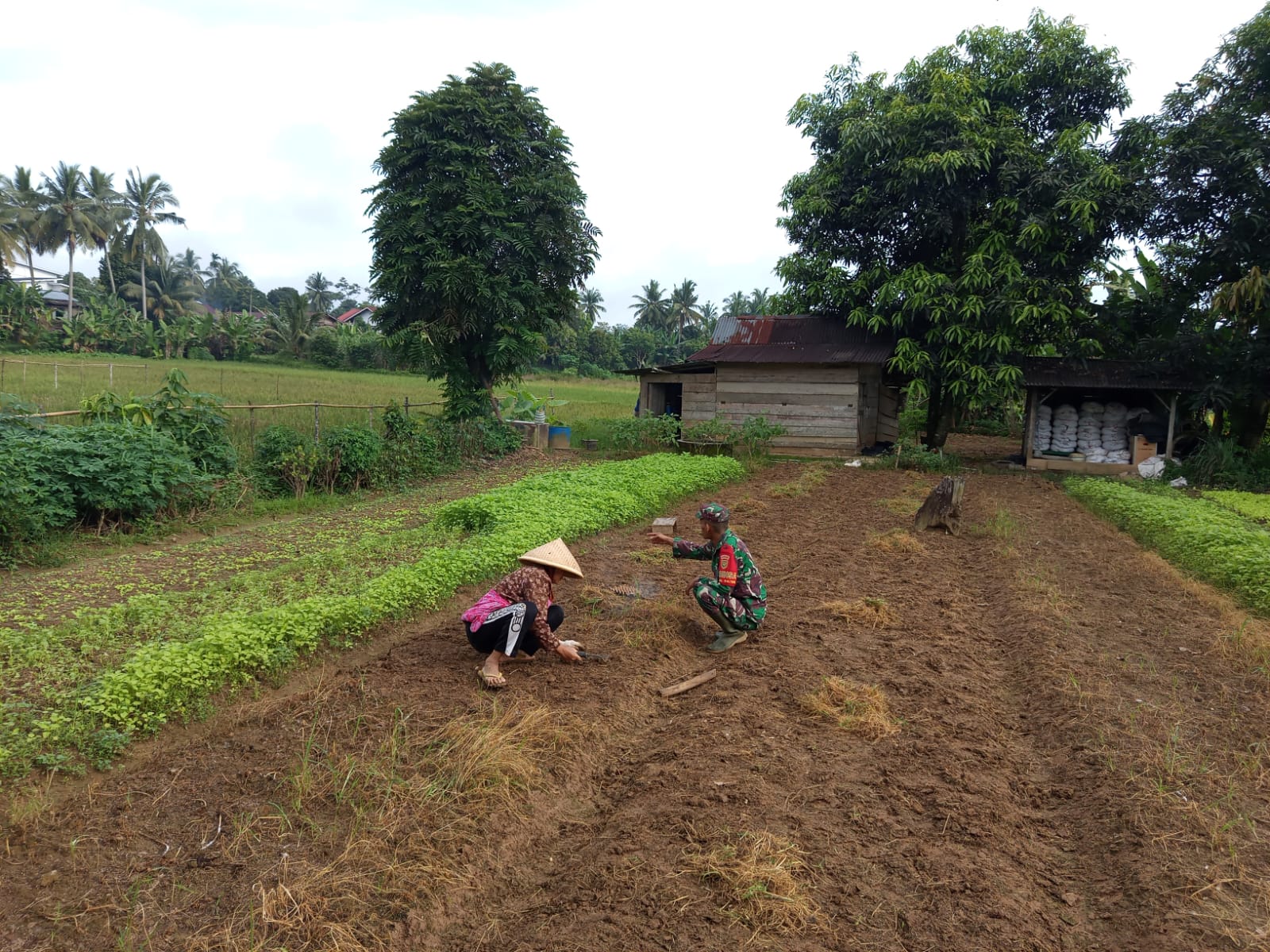 Semangat Babinsa Koramil 04/Sarolangun Kodim 0420/SARKO Serda Muhammad deni ikut terjun ke kebun membantu petani perawatan sayur bayam yg berada Di Kelurahan Sukasari Kecamatan Sarolangun Kabupaten Sarolangun.