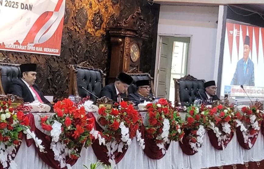 ‘’Alhamdulillah hari ini kita ikuti dua kali paripurna, mendengarkan pidato kenegaraan Bapak Presiden Prabowo Subianto, dalam rangka HUT ke-80 RI. Ada poin-poin penting singkron antara pogram Asta Cita Presiden dengan program Merangin Baru,’’ujar Bupati.