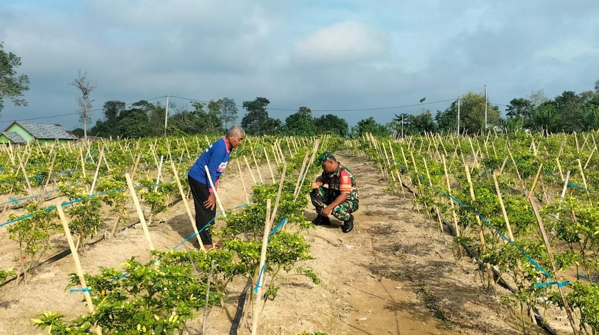 Sarolangun, 8 September 2025 – Dalam upaya memperkuat ketahanan pangan dan mendukung kesejahteraan petani, Koramil 420-04/Sarolangun Kodim 0420/Sarko terus menunjukkan komitmennya melalui pendampingan langsung kepada masyarakat. Salah satu bentuk nyata kegiatan tersebut terlihat dari aksi Babinsa Peltu M. Situmorang yang turun langsung ke kebun cabai milik petani Bapak Syarifudin di Desa Ladang Panjang, Kecamatan Sarolangun.