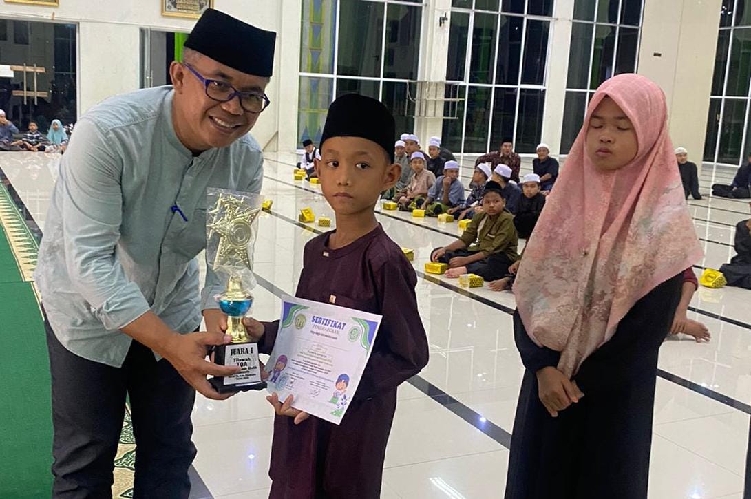 Cabang Adzan dan Iqomah tingkat TPA juara pertama M Hasbi dari SD Negeri 100 Pemenang, juara dua Arsya dari SD Negeri 02 Bangko dan juara tiga Arsyan dari RQ Bina Ilmi.