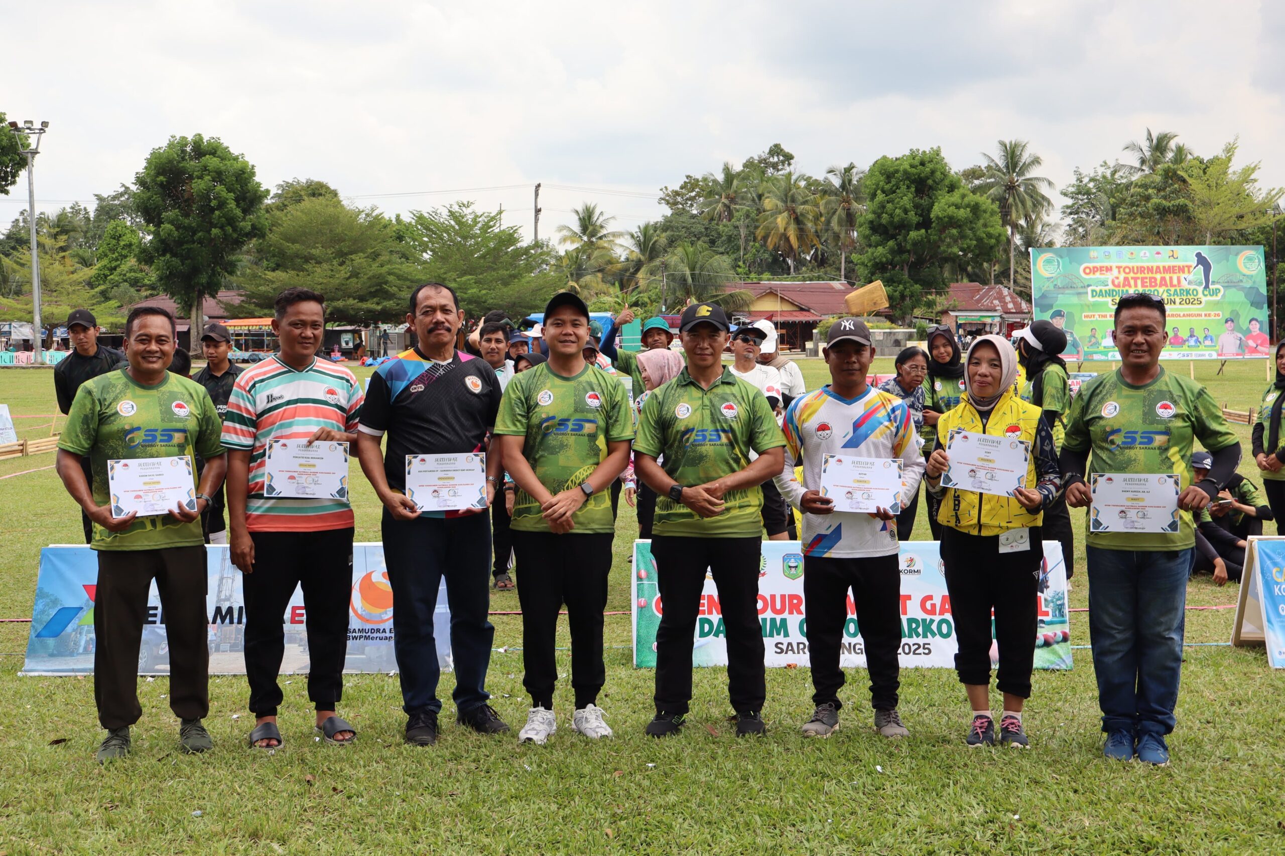 Sarolangun, 28 September 2025 — Dandim 0420/Sarko Letkol Inf Yakhya Wisnu Arianto, S. Sos., M.Han., secara resmi menutup Open Tournament Gateball Dandim 0420/Sarko Sarolangun Cup Tahun 2025 yang berlangsung meriah di Laman Basamo Sriwijaya, Kecamatan Sarolangun. Turnamen yang diikuti 23 tim dari berbagai daerah seperti Bengkulu, Sumatera Barat, dan Sulawesi Tengah ini menjadi ajang kompetisi sekaligus mempererat tali silaturahmi antar pecinta gateball.