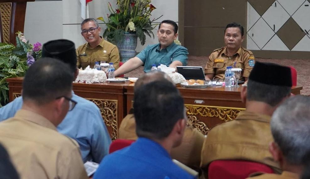 Bangko-Bupati Merangin H M Syukur didampingi Asisten I Setda Merangin Sukoso dan Sekwan Dadang, memimpin jalannnya rapat persiapan Hari Ulang Tahun (HUT) ke-76 Kabupaten Merangin, di Auditorium rumah dinas bupati Merangin, Selasa (30/9).