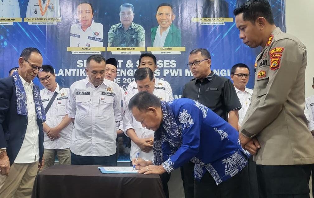 Ajakan tersebut disampaikan wabup secara tegas pada sambutan acara pelantikan para pengurus PWI Kabupaten Merangin periode 2025-2028 oleh Ketua PWI Jambi H Ridwan Agus, di Auditorium Hotel Family Iin Bangko, Kamis (16/10).