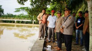 BANGKO – Wakil Bupati (Wabup) Merangin, Khafidh Moein, meninjau langsung kondisi Dam Betuk di Desa Tambang Baru, Kecamatan Tabir Lintas, pada Jumat (7/11).