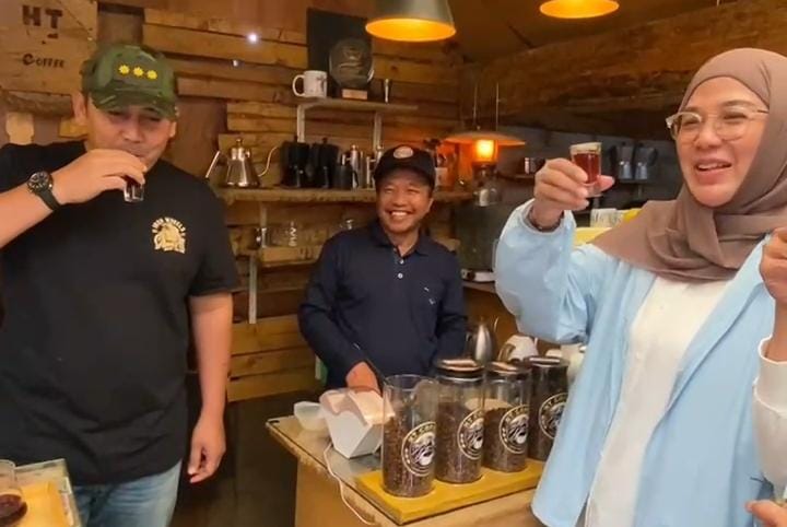 Bupati M. Syukur memesan dan meracik sendiri kopi Americano kesukaanya. Ia juga sempat berbincang dengan Muklis, pemilik Horti Tani (HT) Coffe.