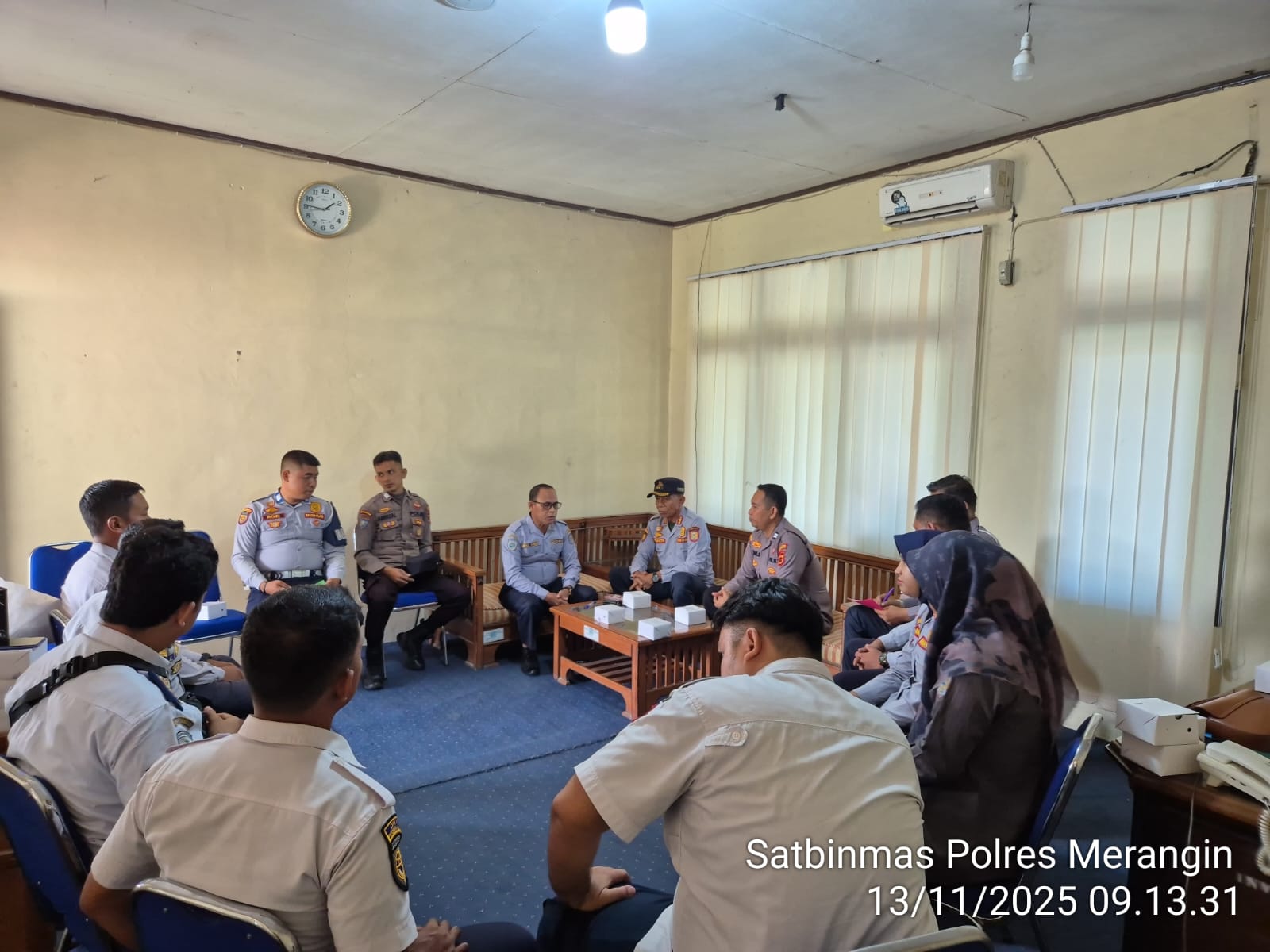 Merangin – Personil Satuan Binmas Polres Merangin melaksanakan kegiatan Pembinaan dan Koordinasi Polisi Khusus (Binkorpolsus) di Kantor Dinas Perhubungan Kabupaten Merangin, Kamis (13/11/2025)