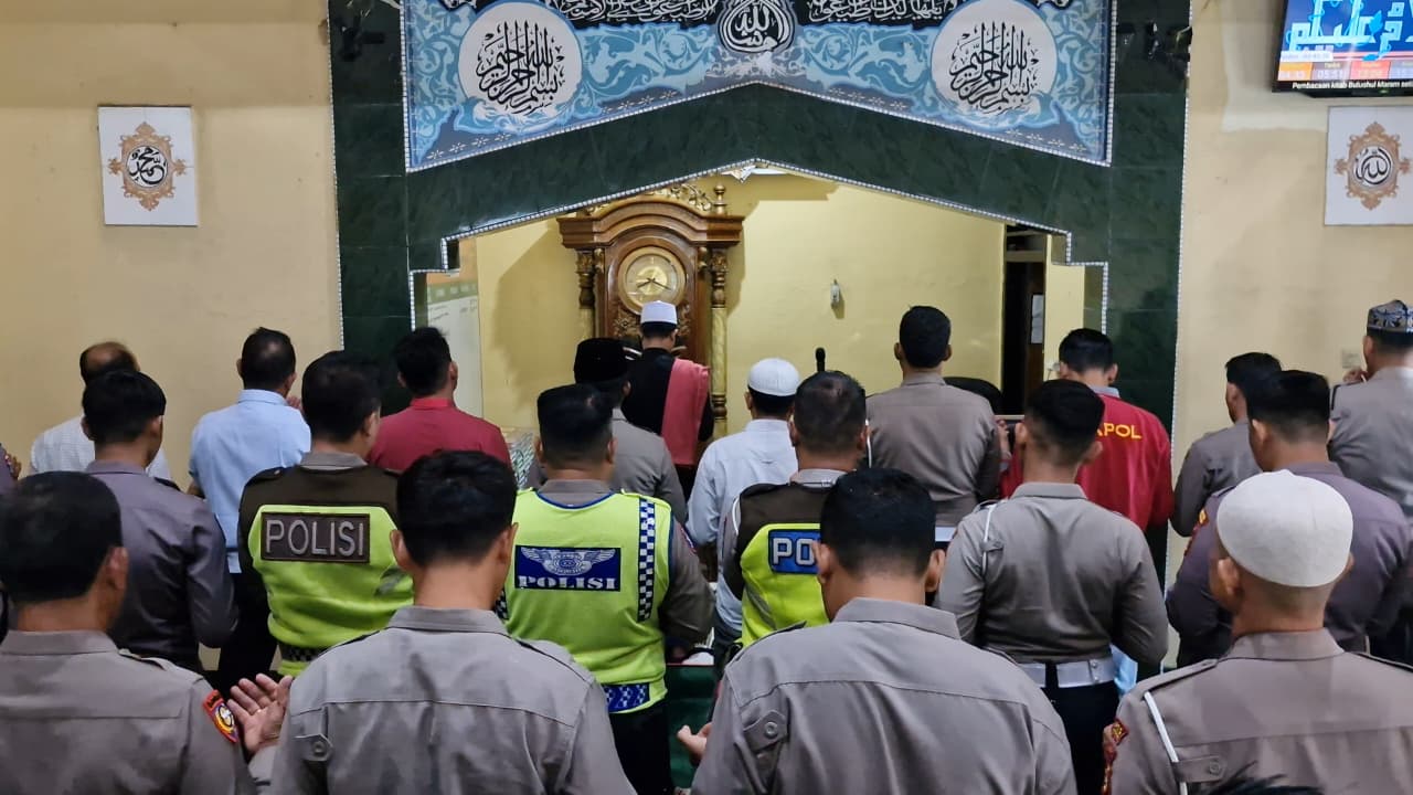 Setelah kegiatan penggalangan dana yang dilaksanakan dilapangan Apel, selanjutnya Personil Polres Merangin yang beragama islam melaksanakan kegiatan Sholat Ghaib dan Doa bersama di Masjid At- Taubah. Sedangkan personil yang beragama Nasrani melaksankan ibadah di Aula Wira Satya Polres Merangin.